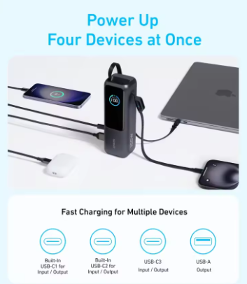 The Anker Zolo 25,000 mAh 165 W Power Bank is a high-capacity portable charger designed for ultra-fast dual laptop charging. Featuring a sleek LED display, it provides real-time power status and supports fast charging for multiple devices simultaneously. Compact and reliable, this power bank is perfect for on-the-go professionals and travelers who need powerful, convenient battery backup.